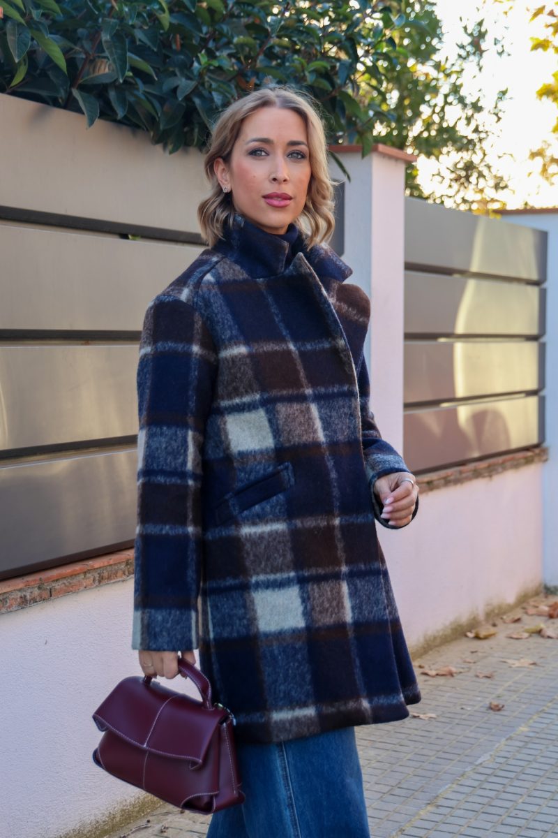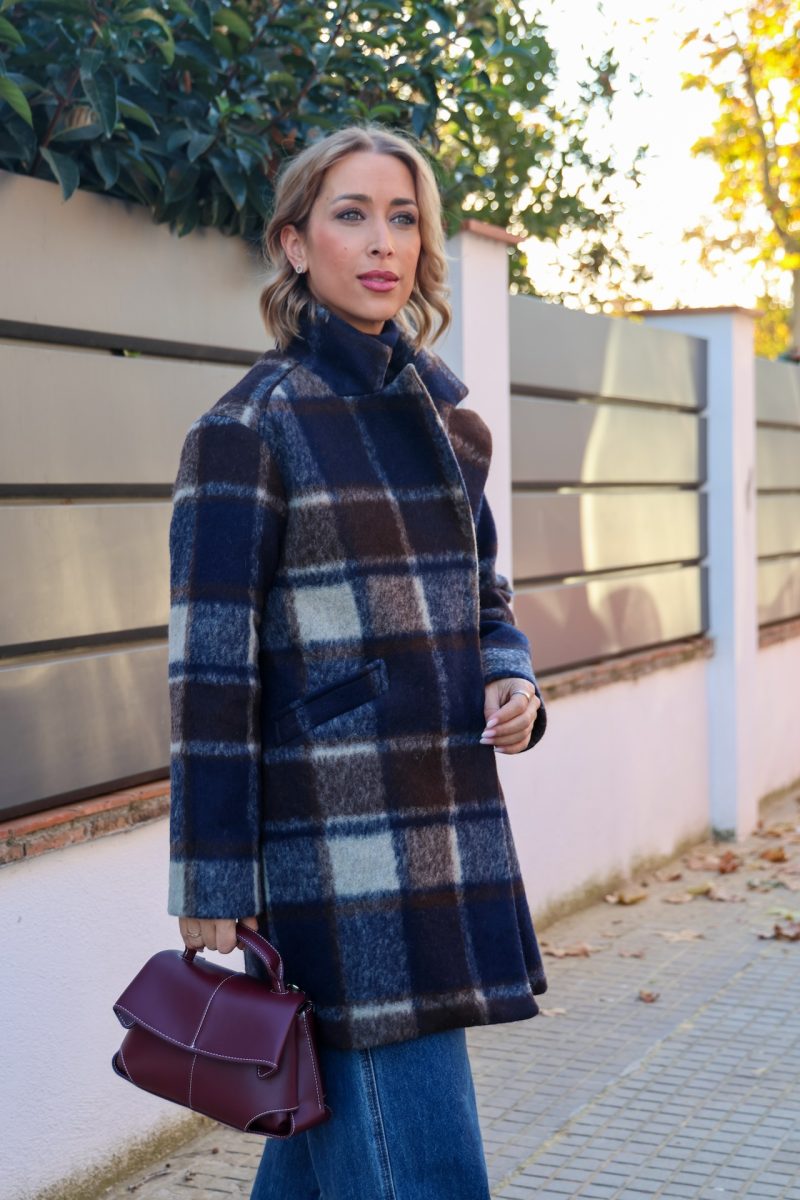 Abrigo de corte clásico con estampado de cuadros en tonos marino, beige y marrón. Su tejido suave y cálido lo convierte en la prenda perfecta para elevar cualquier look de invierno. Diseño recto, solapas marcadas y cierre delantero. Ideal para combinar con jeans, punto o camisas.