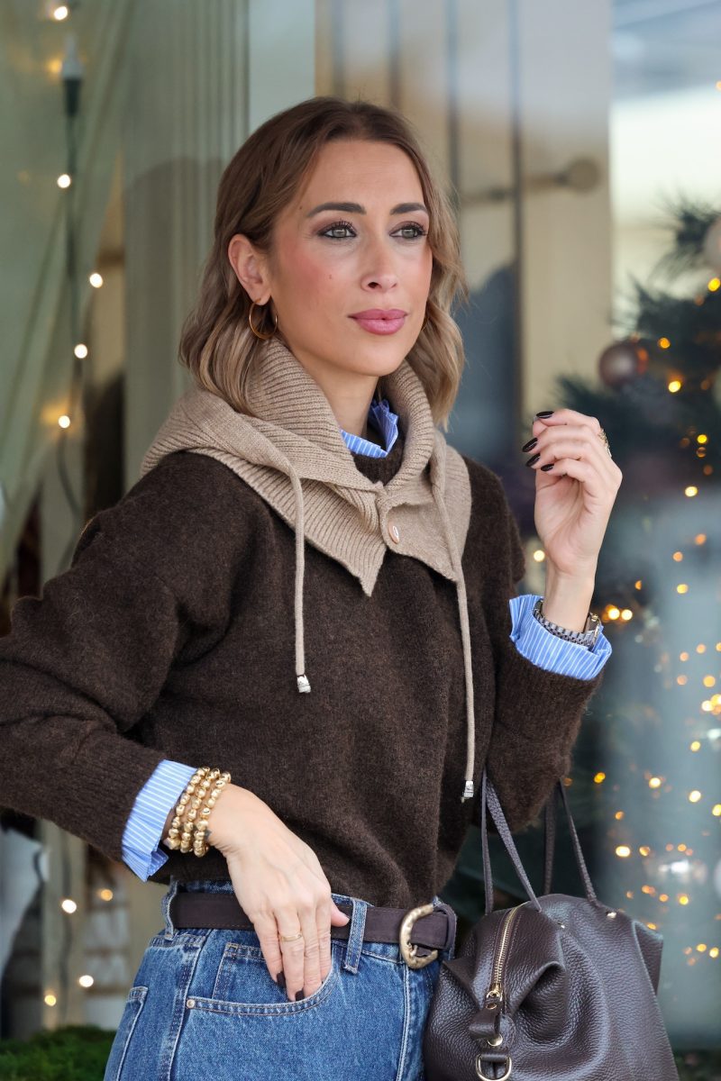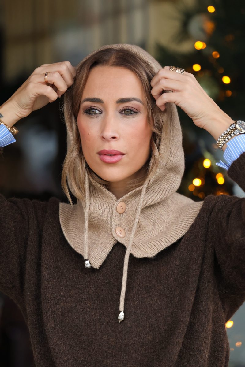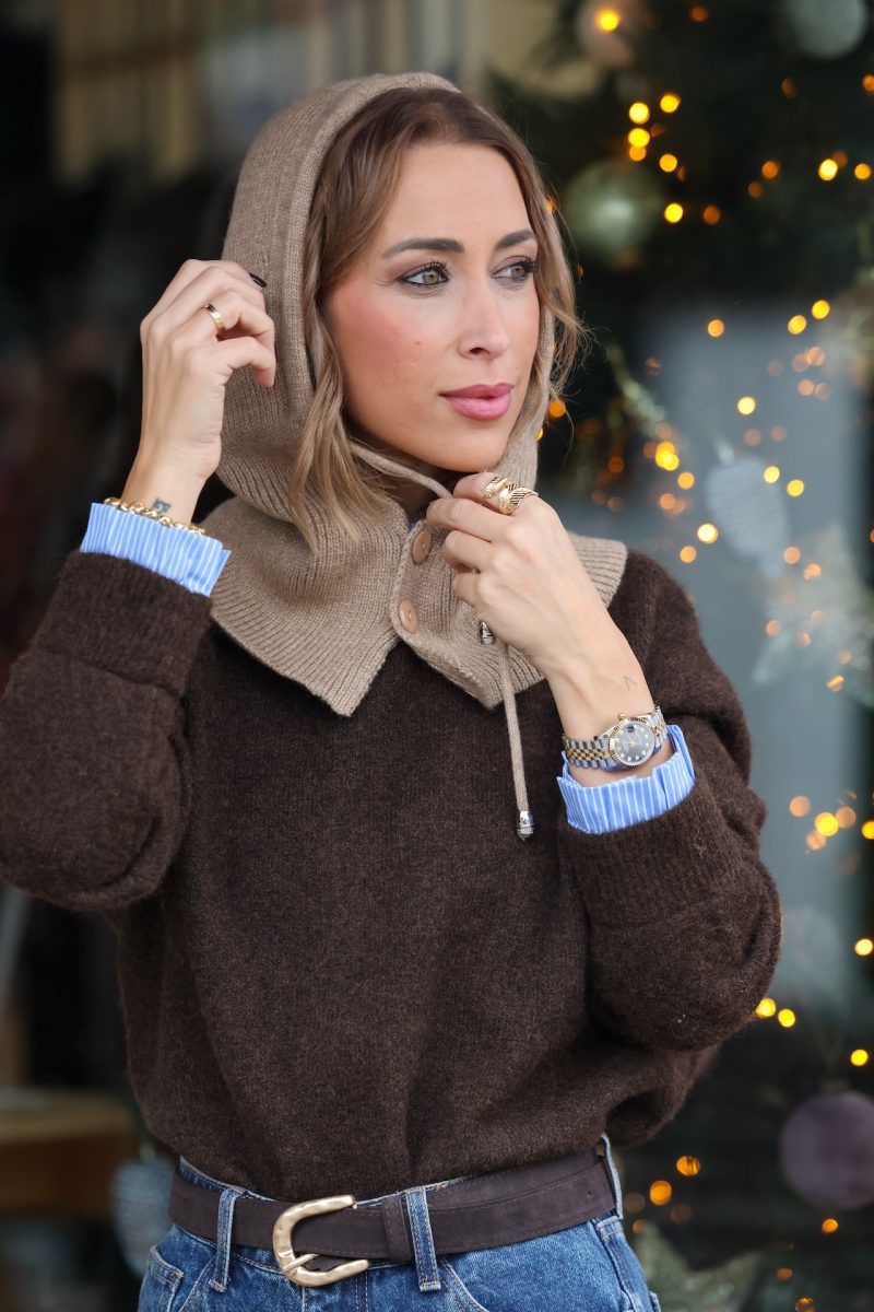 Balaclava de punto suave con botones y cordones ajustables. Un accesorio de invierno cálido, cómodo y fácil de combinar, ideal para proteger del frío con estilo.