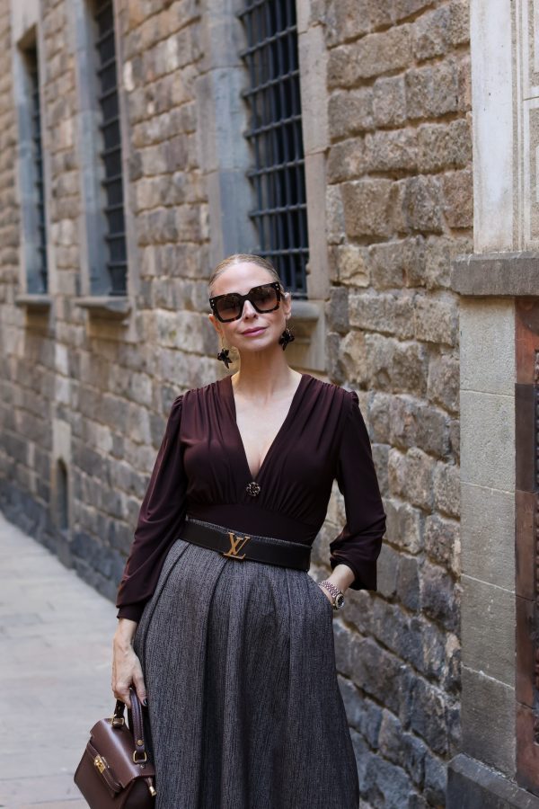 Body elegante de manga larga con escote cruzado y detalle fruncido que realza la silueta. Su tejido fluido aporta caída y comodidad, ideal para looks sofisticados tanto de día como de noche. Disponible en marrón y en negro.