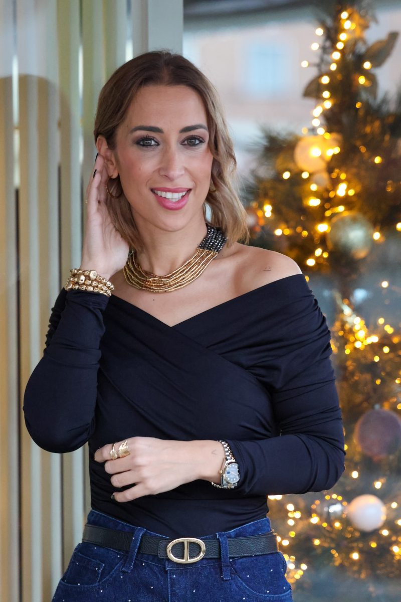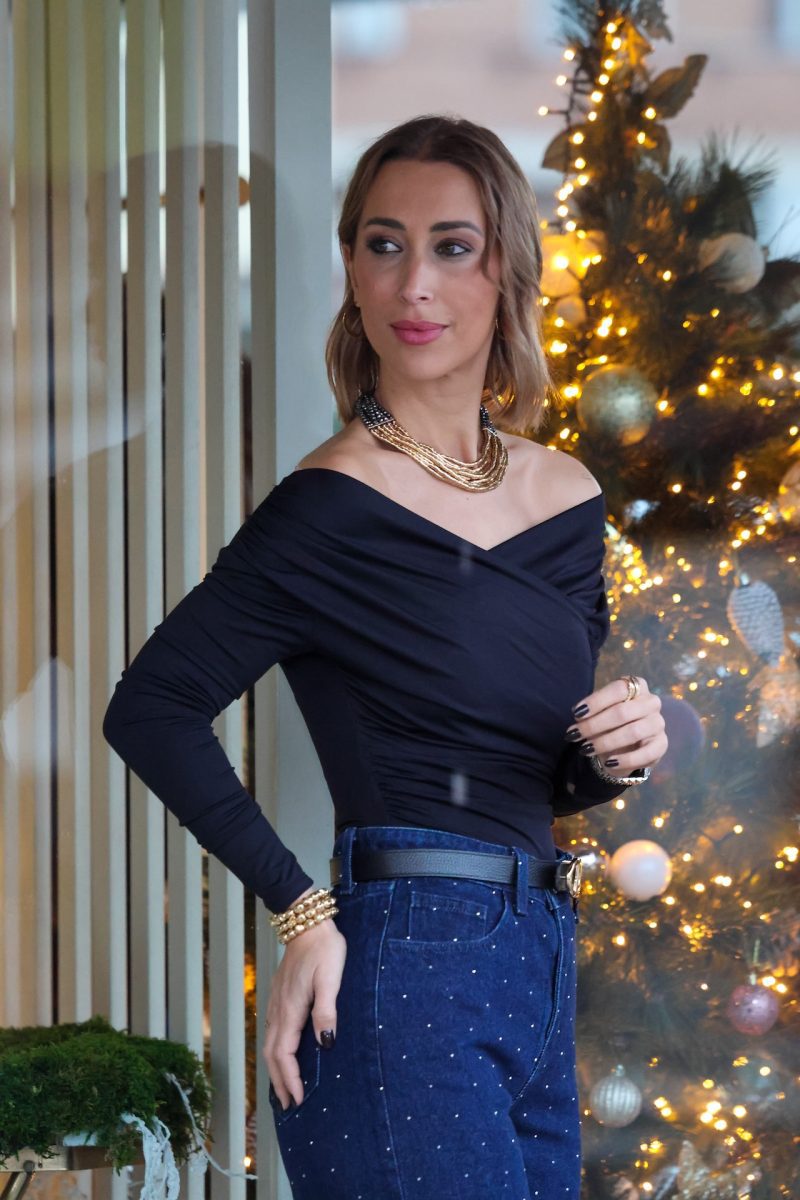 Body de tactel con escote cruzado y hombros descubiertos. Tejido elástico, suave y cómodo que se adapta al cuerpo. Disponible en color negro y marrón, ideal para looks elegantes o de noche.