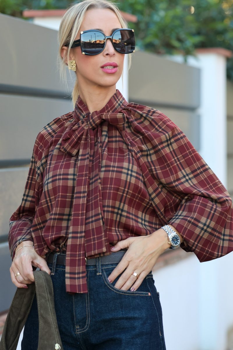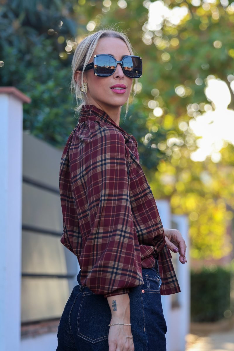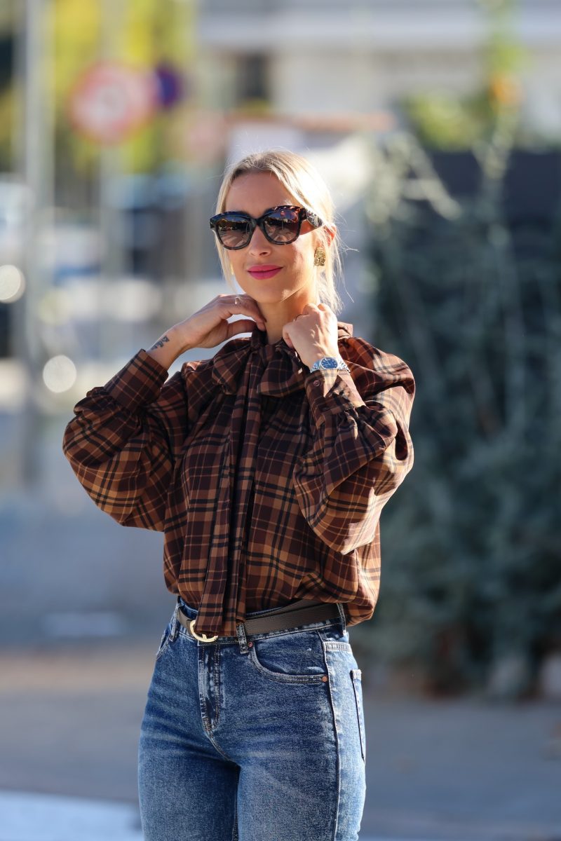 La camisa que transforma cualquier outfit. Su lazada aporta un toque femenino y chic, mientras que el estampado de cuadros la convierte en una prenda versátil y con mucha personalidad. Ideal para elevar tus jeans favoritos esta temporada.