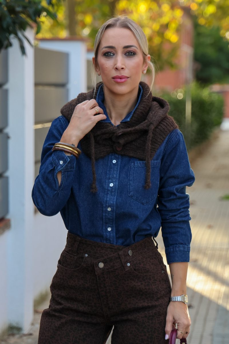 Camisa o sobrecamisa en denim. Botones de arriba a bajo. Cuello tradicional.