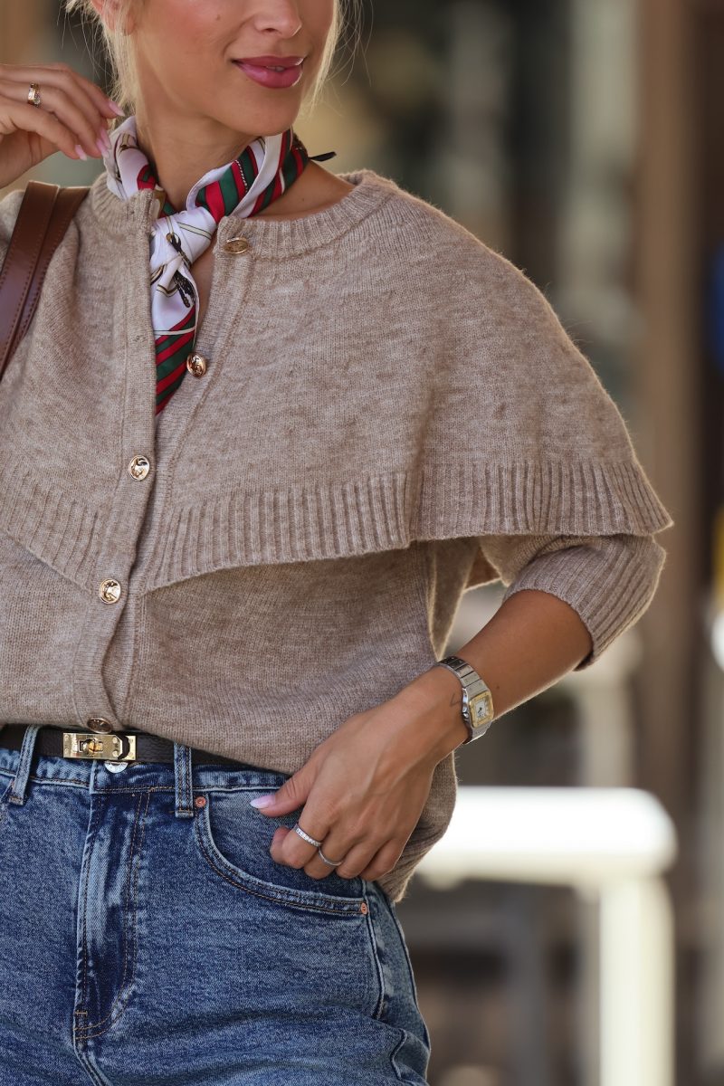 Cárdigan efecto capa con botones dorados.