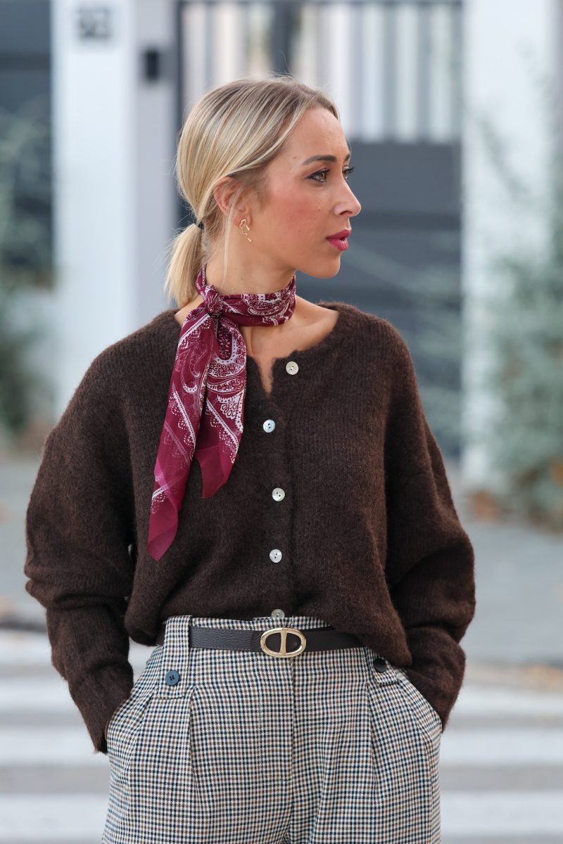 Cárdigan de punto suave en color café con cierre de botones frontales. Su tacto agradable y su corte cómodo lo convierten en la prenda perfecta para crear looks cálidos y estilosos esta temporada. Ideal para combinar con camisas, pañuelos o tus jeans favoritos.