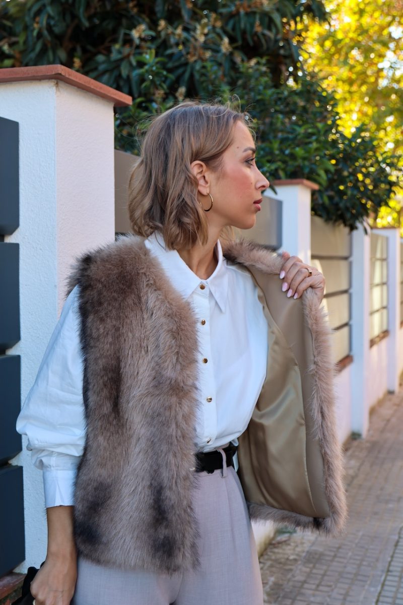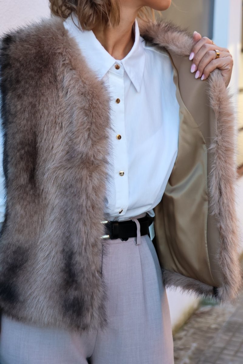 Ligero, suave y con un acabado ultra elegante, este chaleco de pelo aporta calidez y un toque sofisticado tanto en outfits casual como más arreglados. Perfecto para combinar con camisas, jerséis o blazers.