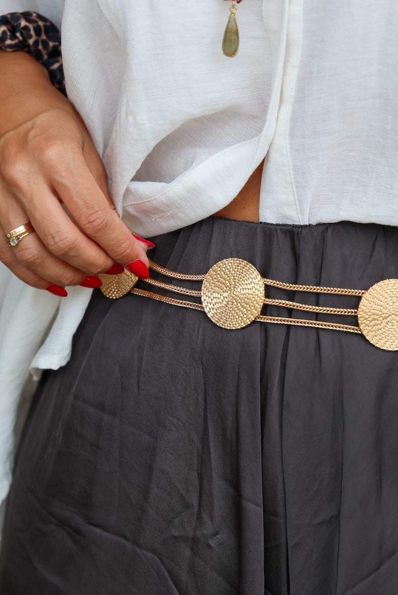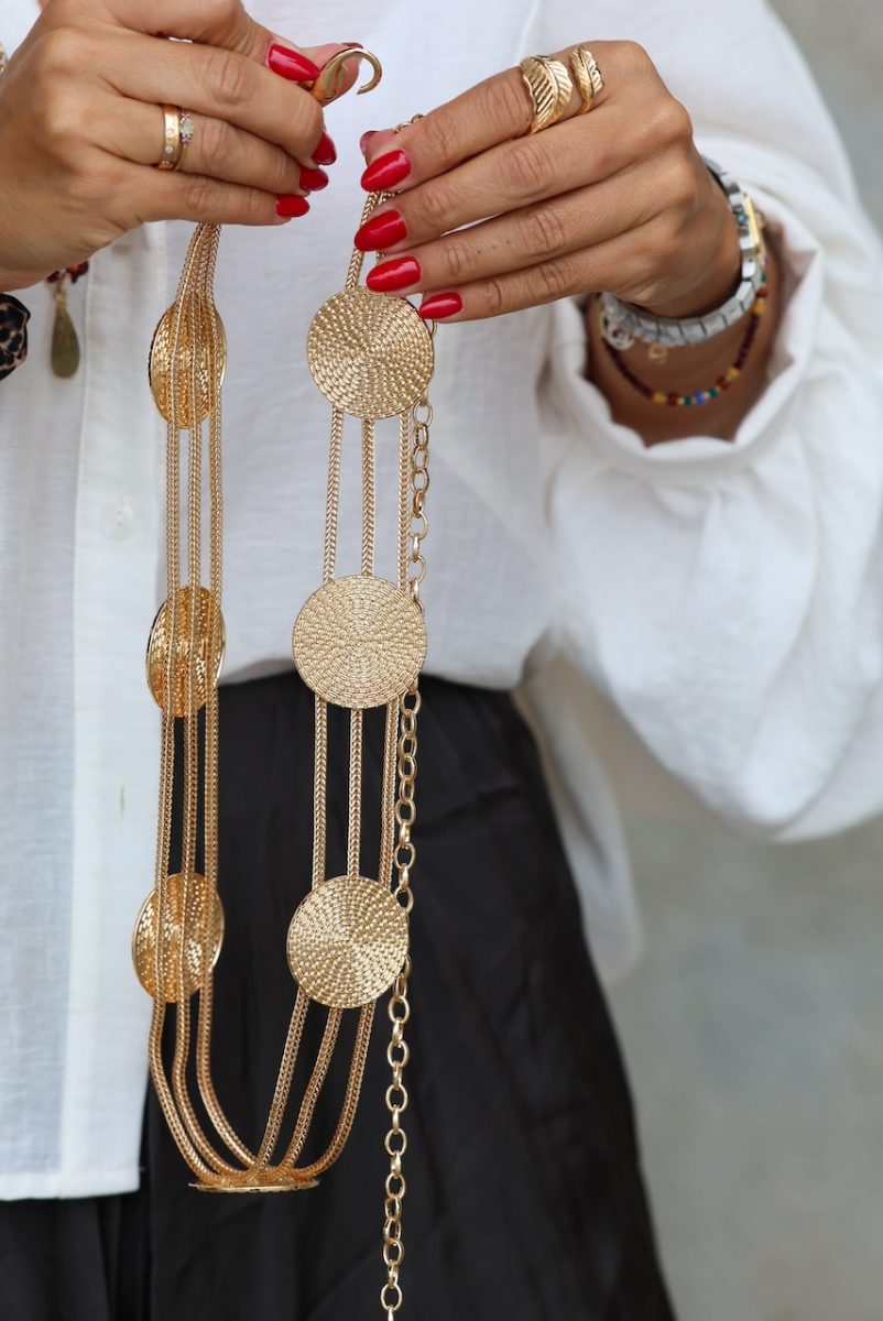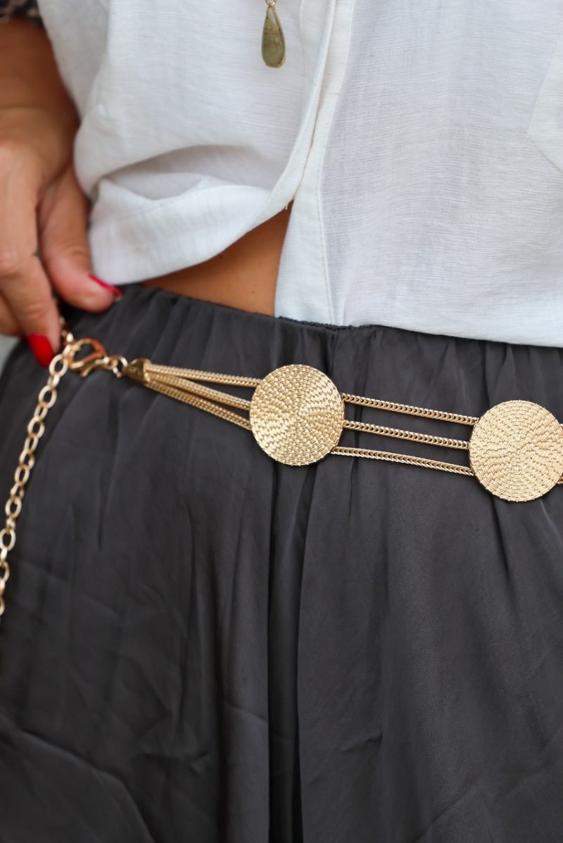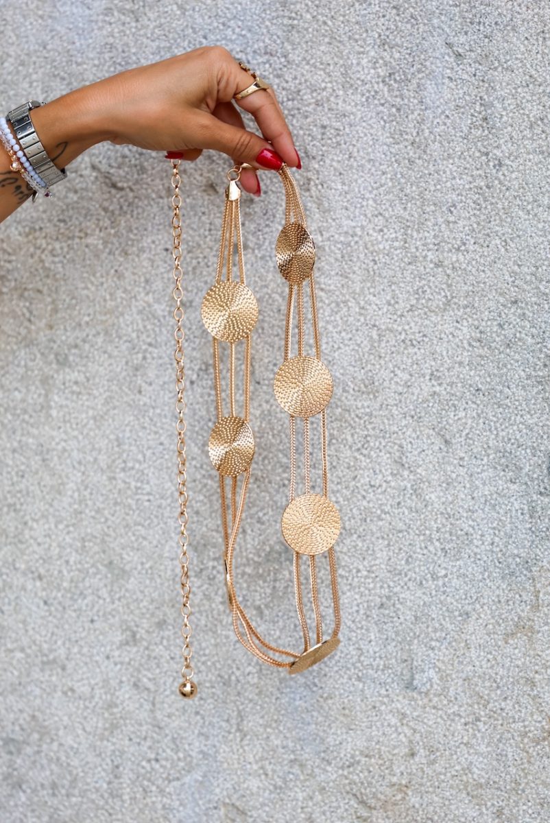 Cinturón cadena en dorado con broche.
