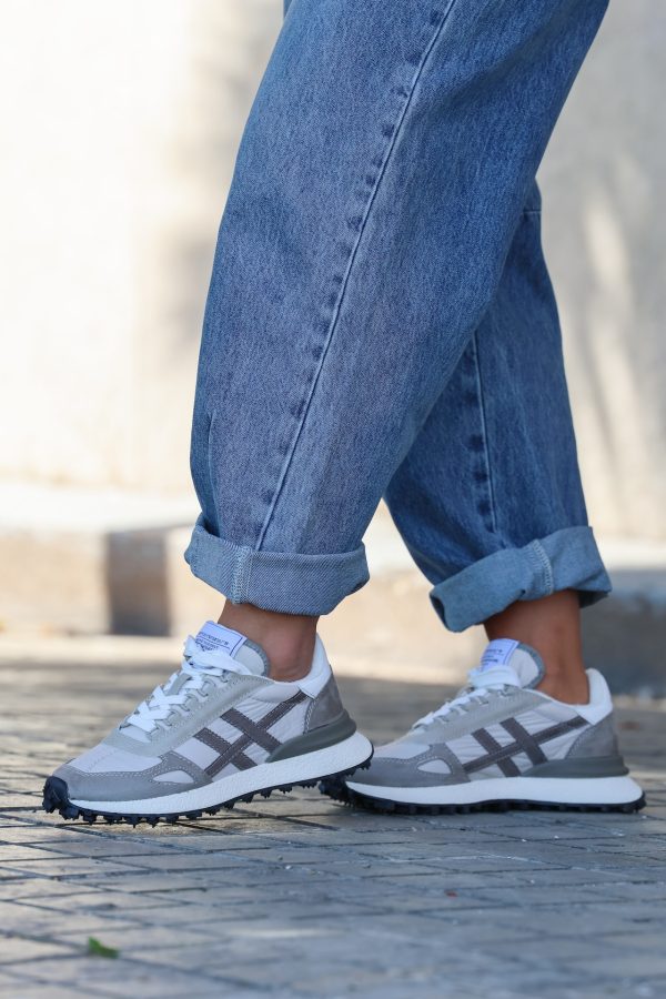 Deportivas en color GRIS con suela blanca. Cordones atados y suela de taco. Talla justo.