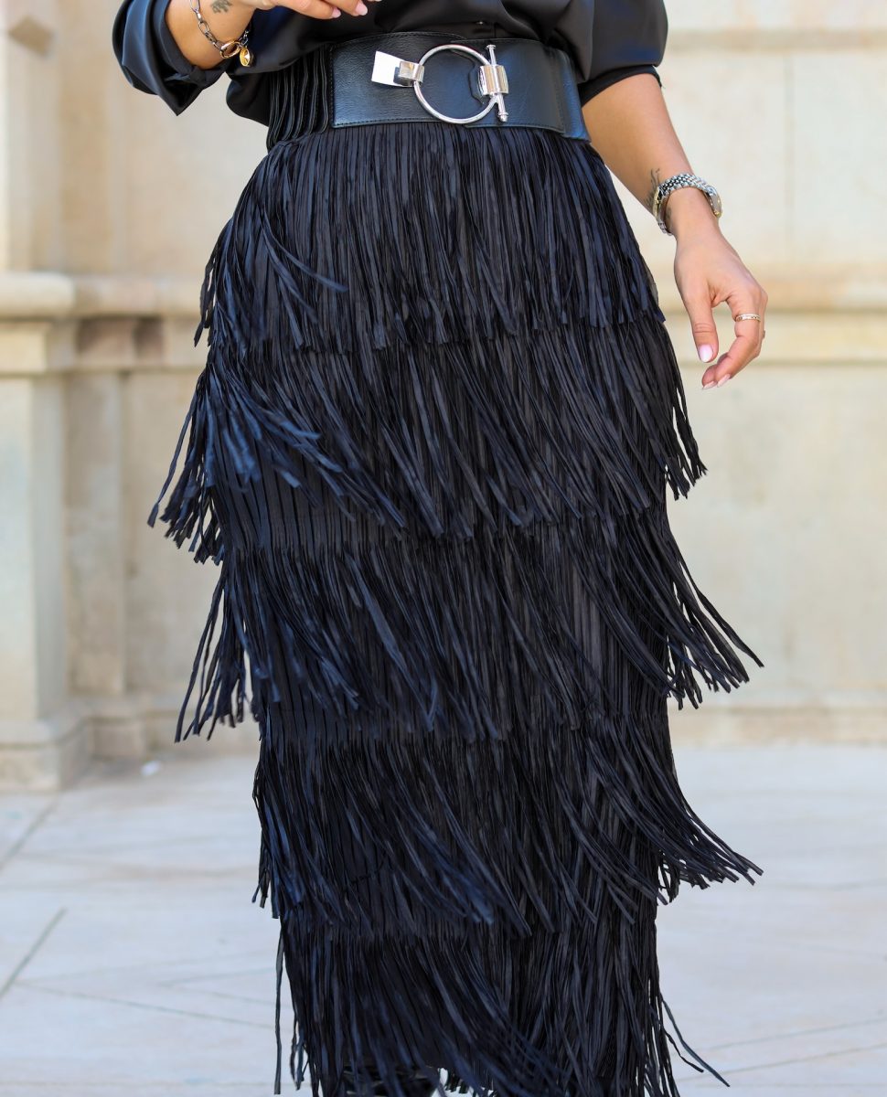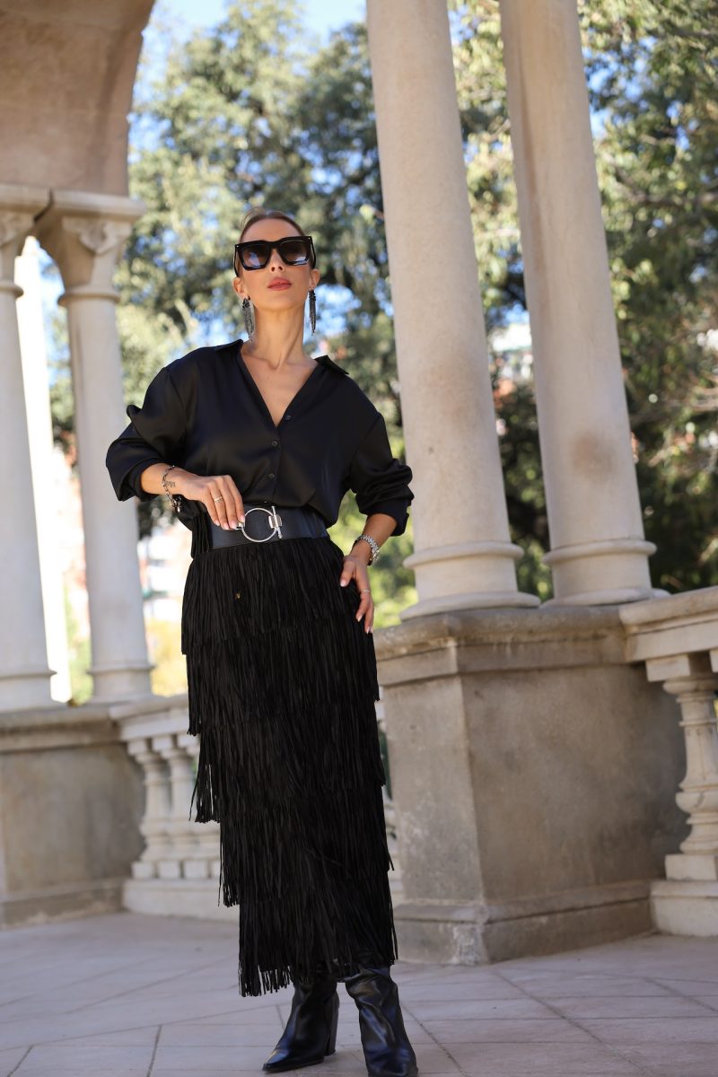 Una pieza con carácter, llena de movimiento y textura. Perfecta para elevar cualquier look, desde camisas satinadas hasta básicos más relajados.