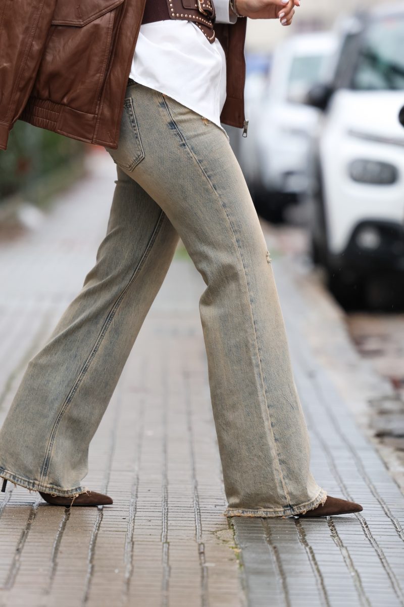 Su tiro bajo/medio define la silueta de forma natural, mientras que los detalles sutilmente desgastados aportan carácter y un acabado desenfadado. Un vaquero pensado para crear looks con personalidad, perfecto para combinar con camisas, blusas fluidas o chaquetas de piel.