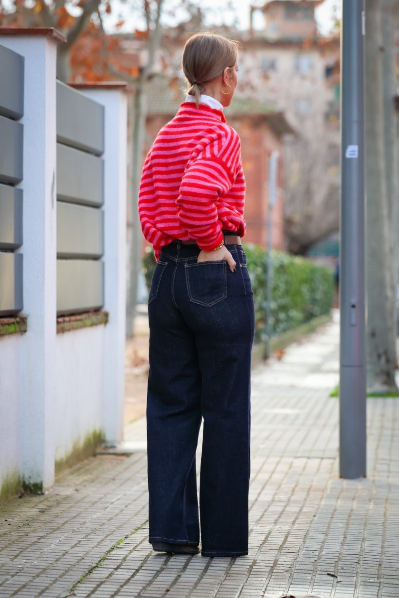 Jeans de corte recto y pernera ancha, diseñados para estilizar la silueta y aportar comodidad durante todo el día.