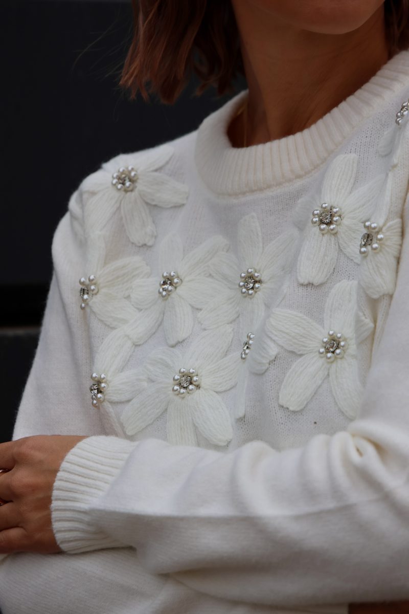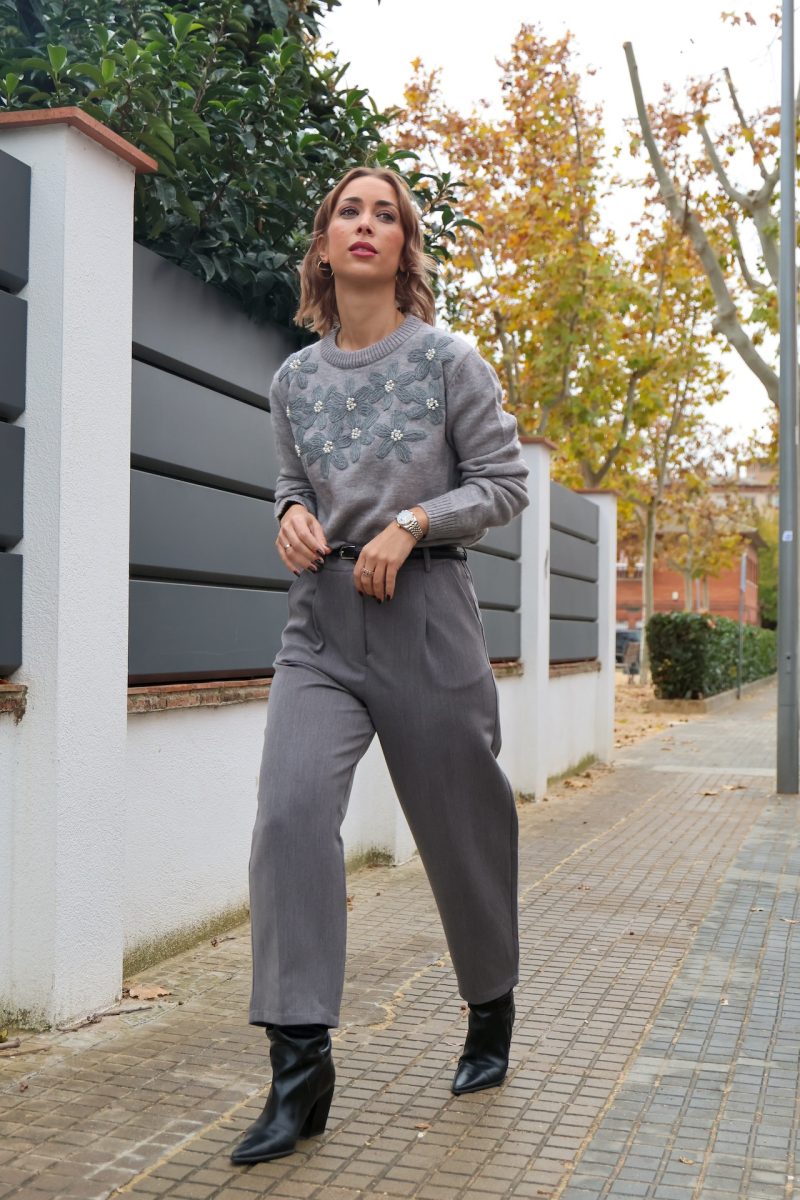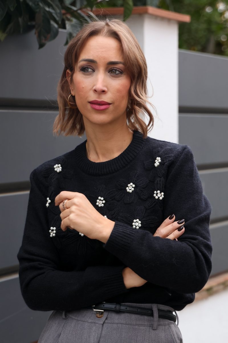 Su detalle de flores bordadas en relieve con perlas aporta un toque femenino y sofisticado sin renunciar a la comodidad.