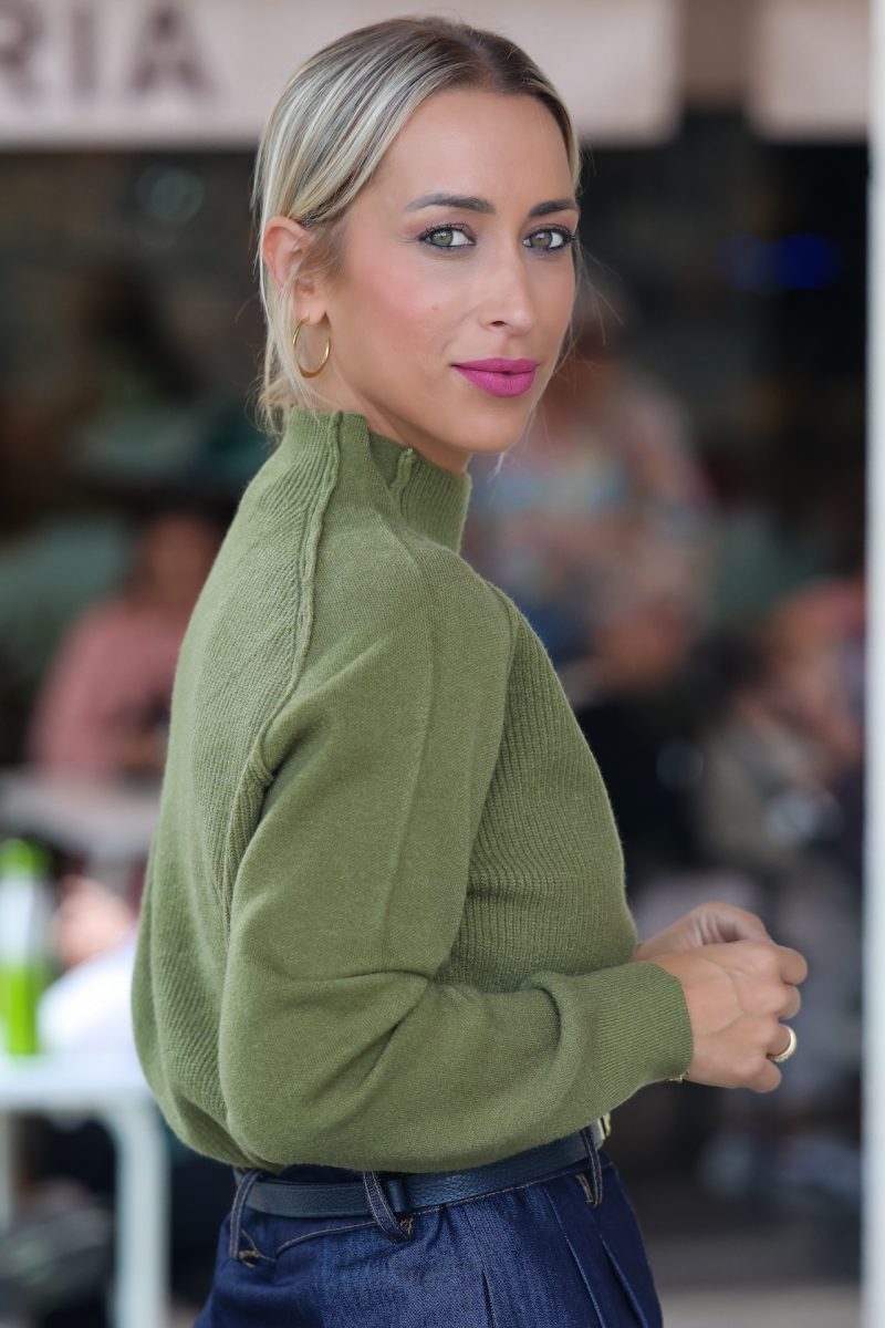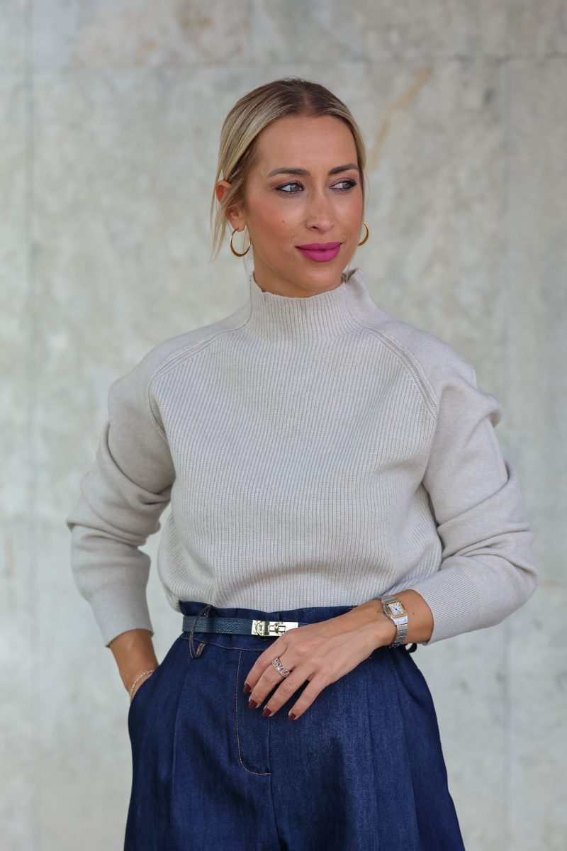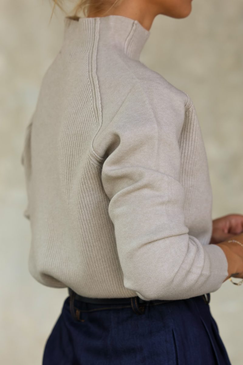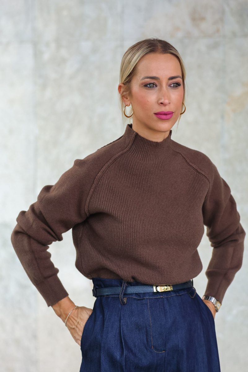 Con cuello subido y tejido de canalé suave, es perfecto para crear looks cómodos y con estilo.