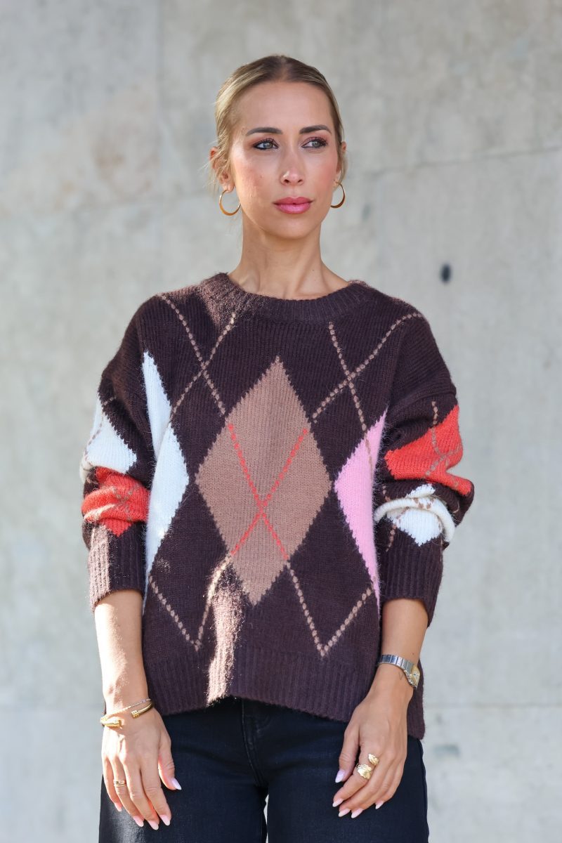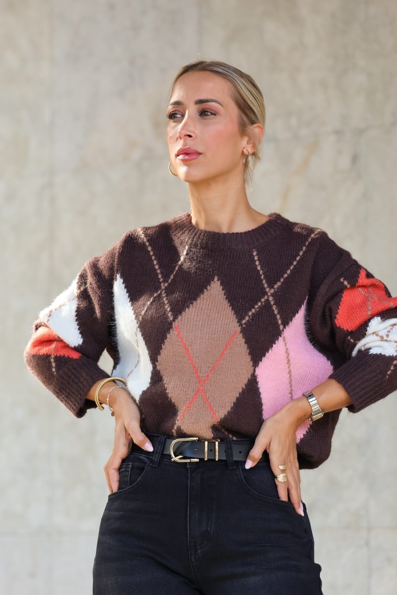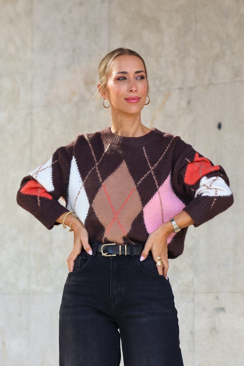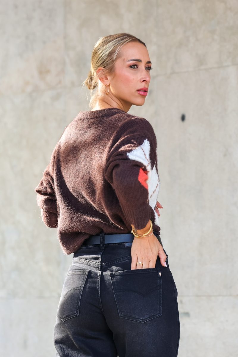 Confeccionado en tejido tipo lana, combina tonos cálidos con un toque de color que aporta frescura al look. De cuello redondo y corte relajado, es una prenda cómoda, suave y perfecta para los días de frío.