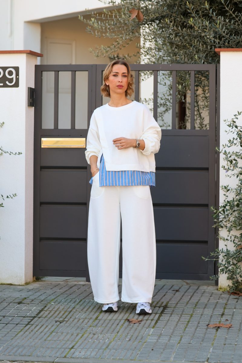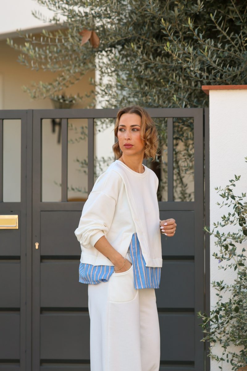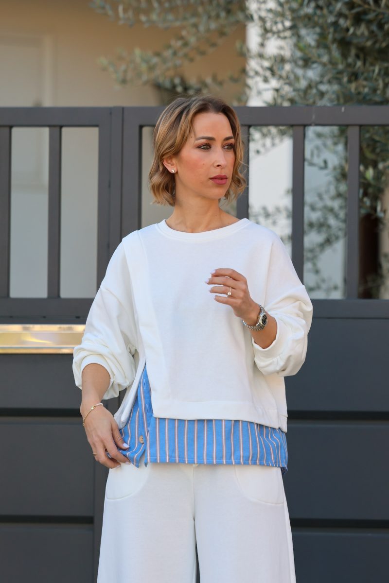 Sudadera de diseño combinado con detalle interior tipo camisa, que crea un efecto superposición original y actual. Corte relajado, cuello redondo y acabados cuidados para un look cómodo pero especial.