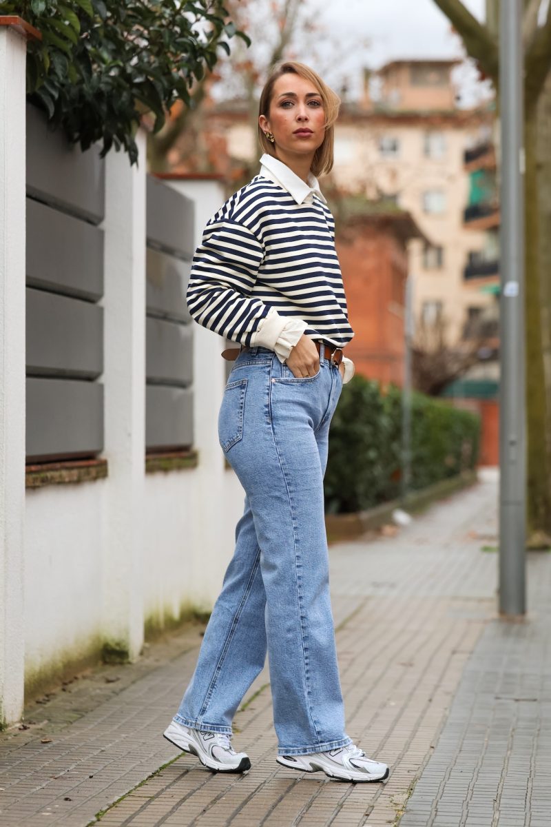 Sudadera en color marino con rayas blancas, una prenda cómoda y versátil con un aire clásico renovado. Confeccionada en un tejido suave y agradable, destaca por sus detalles de puños en contraste, que aportan un toque especial y cuidado al diseño.