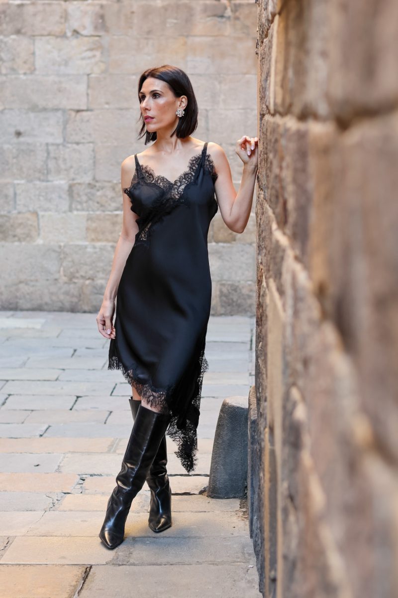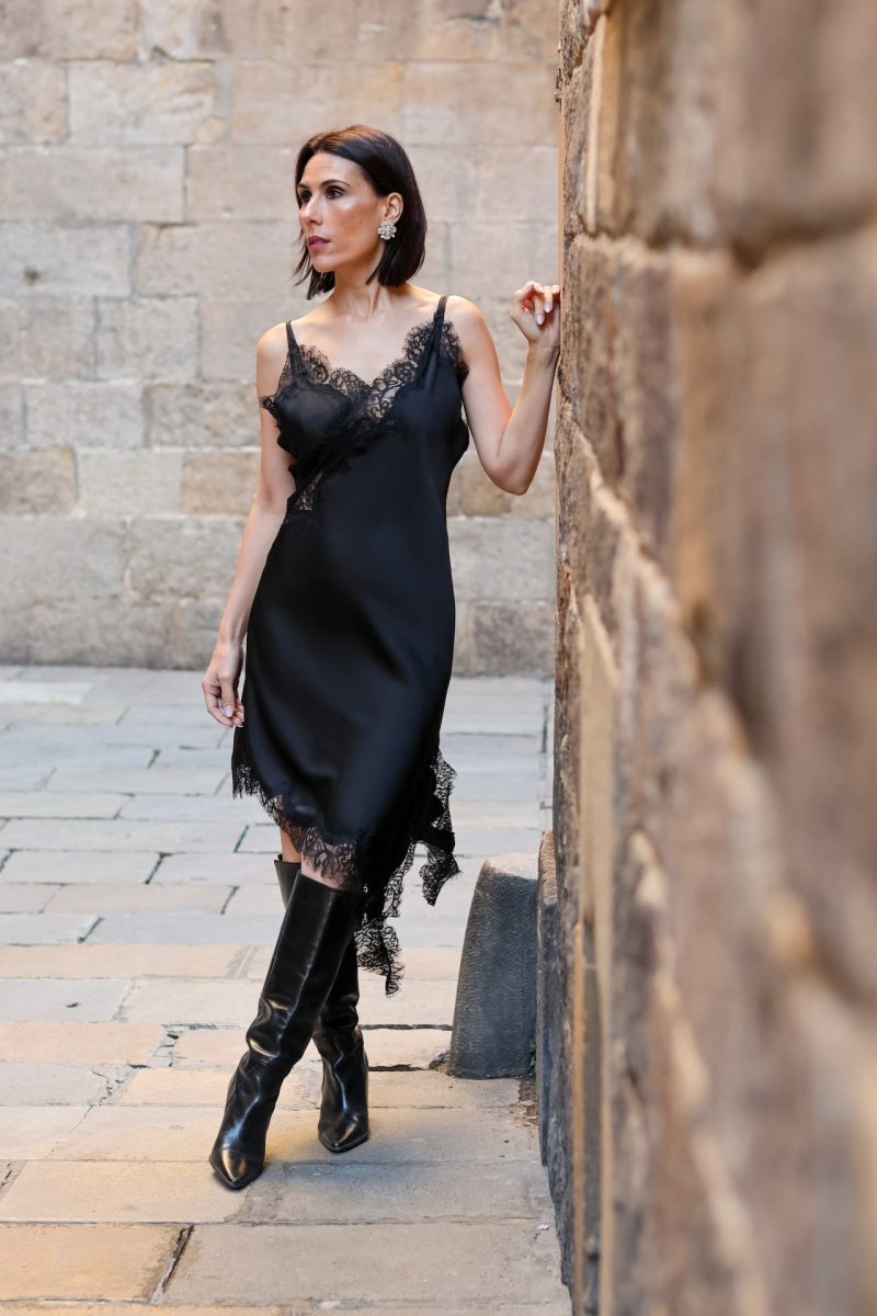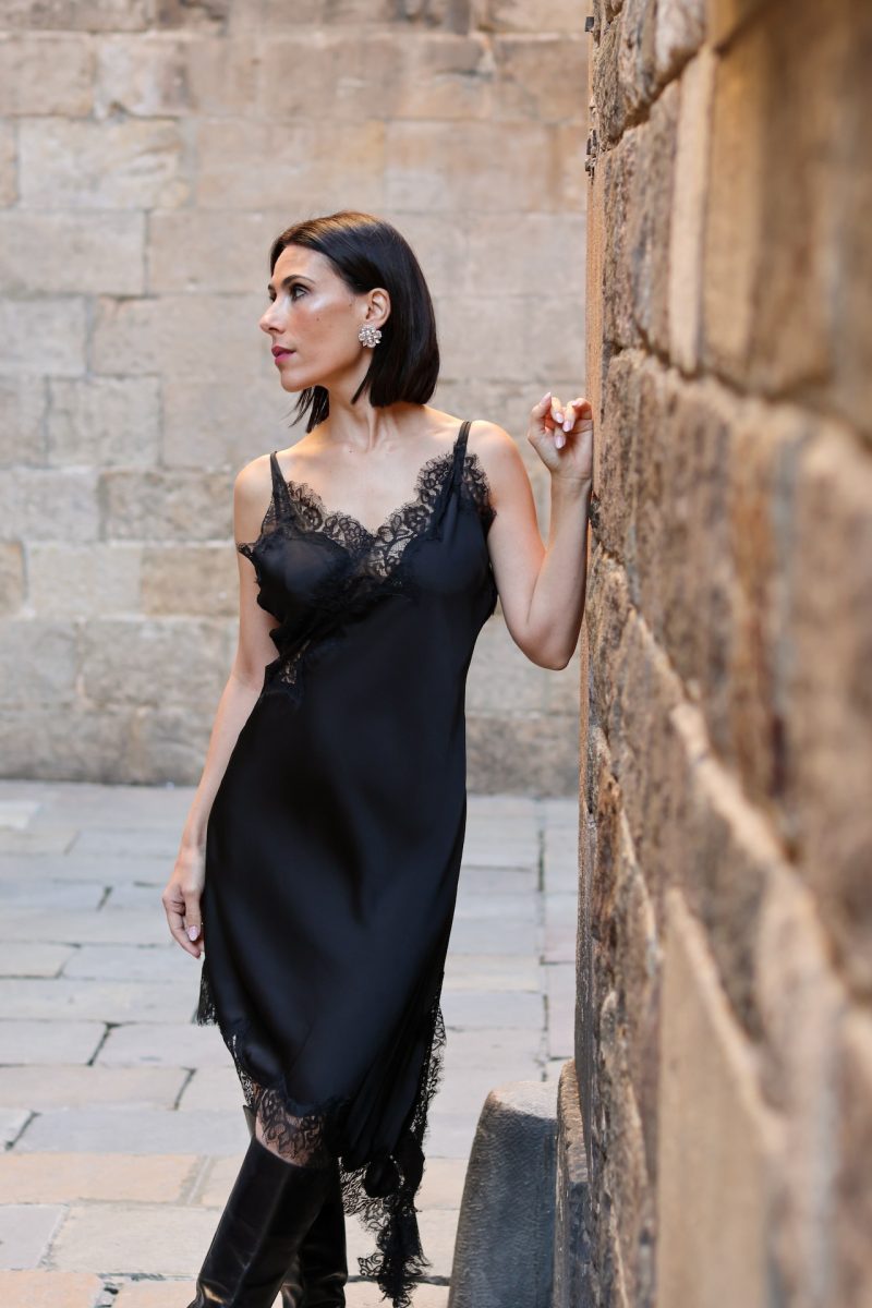 Nuestro vestido lencero negro es la prenda perfecta para lucir sofisticada sin esfuerzo. Su tejido satinado con encaje delicado realza la silueta y aporta un toque sensual y atemporal. Ideal para noches especiales, cenas o eventos donde quieras destacar con un look chic y femenino.