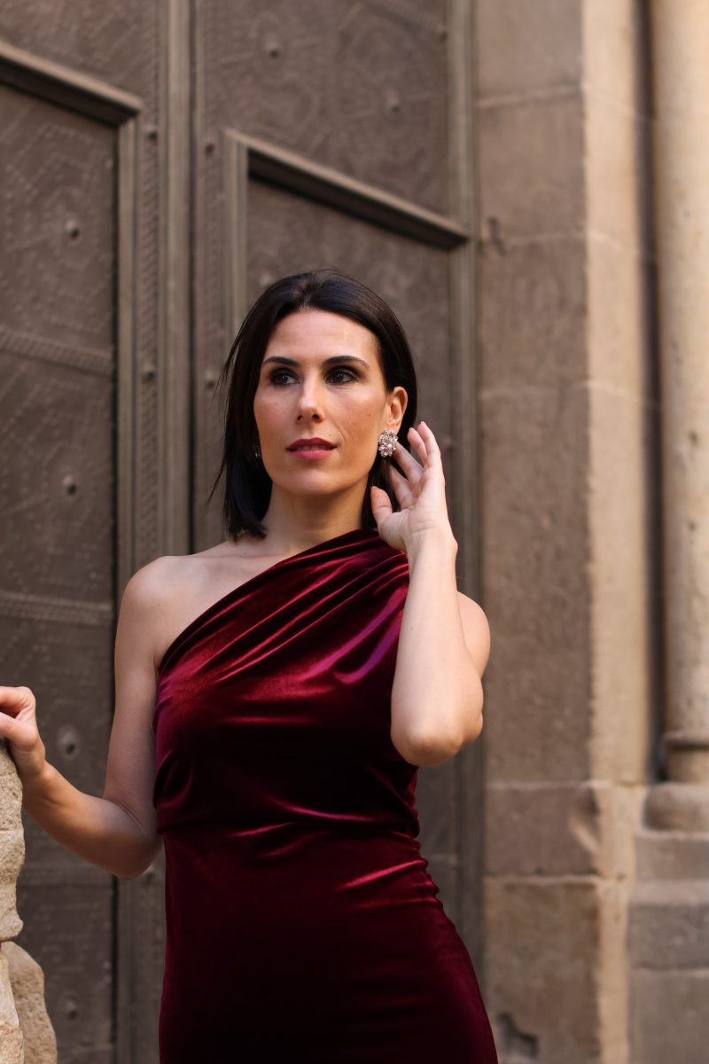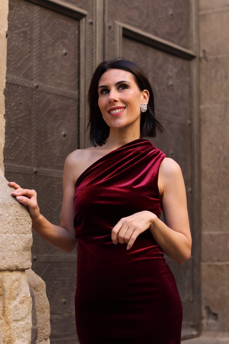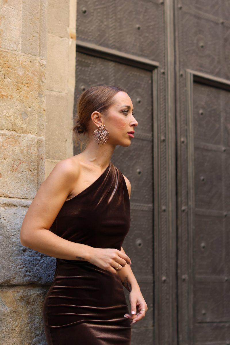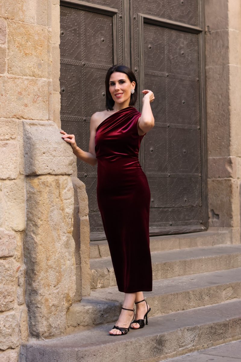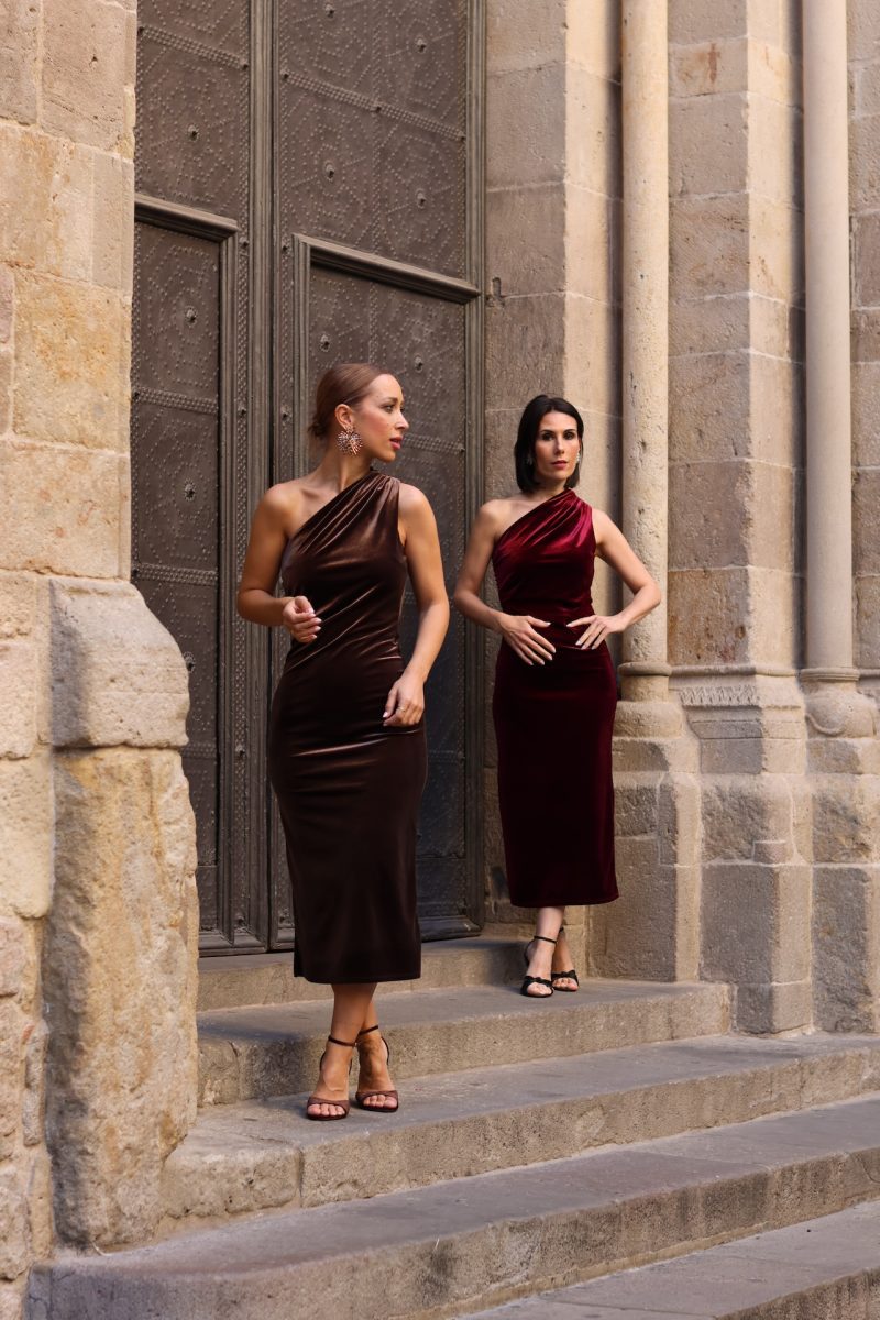 Vestido midi de terciopelo con diseño asimétrico que realza la silueta con un acabado sofisticado. Un modelo perfecto para eventos y noches especiales disponible en dos tonos irresistibles.